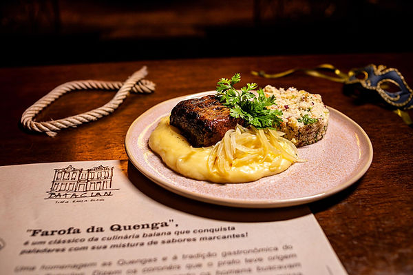 Reviva os tempos áureos do Bataclan com o nosso icônico Prato Típico das Quengas! Essa deliciosa criação traz o sabor autêntico da história, com farofa de quenga, filé do sol, purê de aipim e cebola na manteiga.